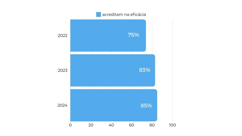 Segundo pesquisa global feita pela Influencer Marketing Hub, 85% dos entrevistados acreditam que o marketing de influência é uma forma eficaz de marketing, um aumento em relação aos anos anteriores.